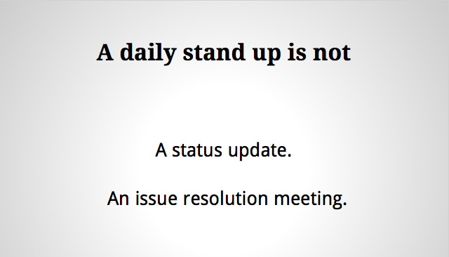 - NOT a Status Meeting – This is THE most common pitfall for a stand-up meeting
